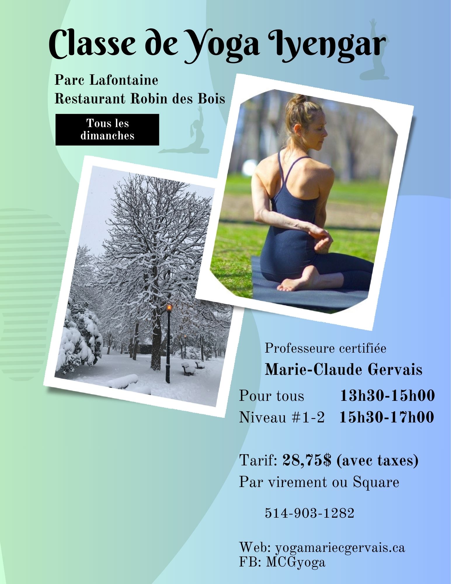 - Inscription par mail (mcgervais.yoga@gmail.com)